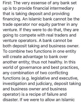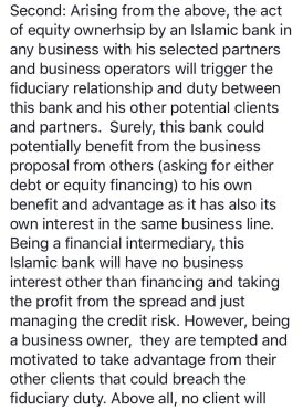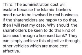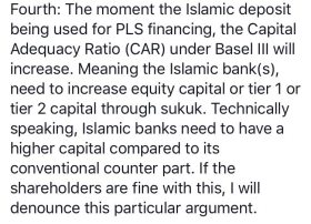 The approach I will take will be based on the comments directly by Dr Daud, where I included the actual screenshots from the FB posting made by Dr Daud in which he outline 5 reasons why banks (including conventional banks) should avoid these PLS structures. In that way, there should not be any ambiguity on what has been written by Dr Daud. And my aim is not to discredit any parties, but to dissect my understanding on the subject as a product developer living in a bank offering Islamic Banking products and services.