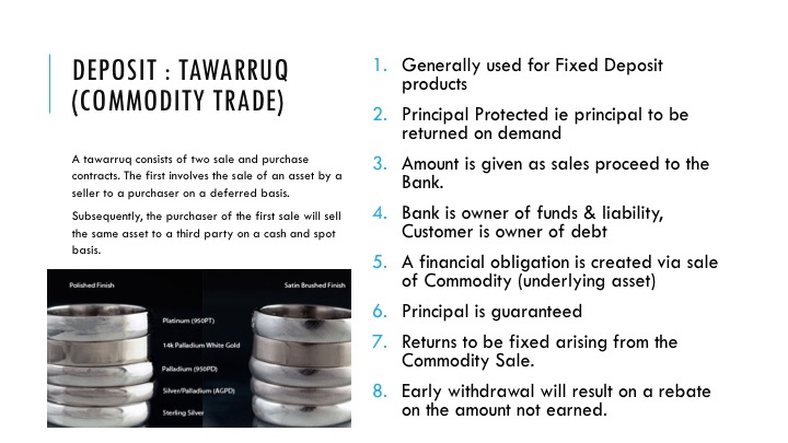 Thus, the industry evolved into offering Deposit products based on Tawarruq.